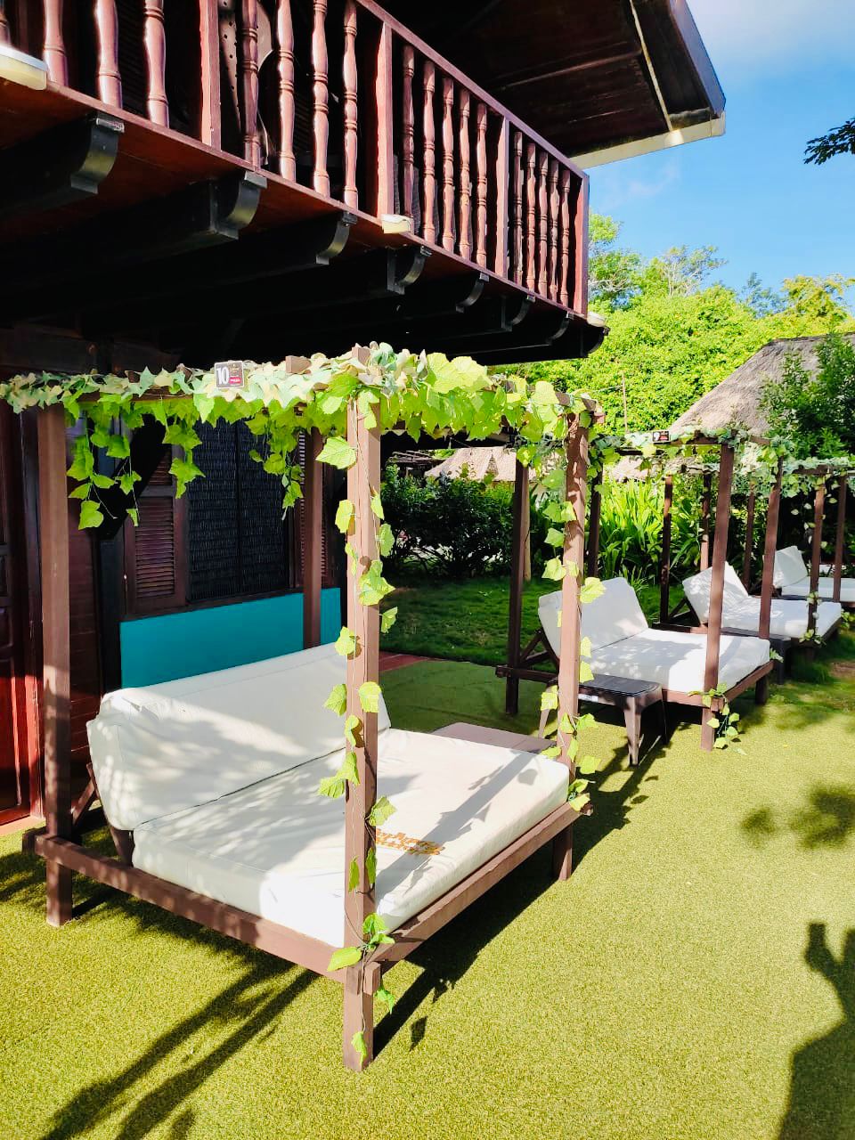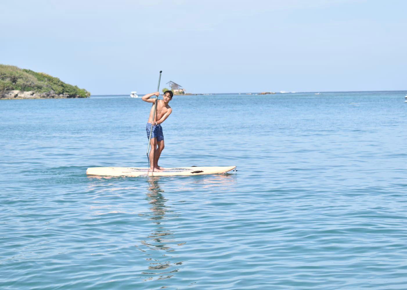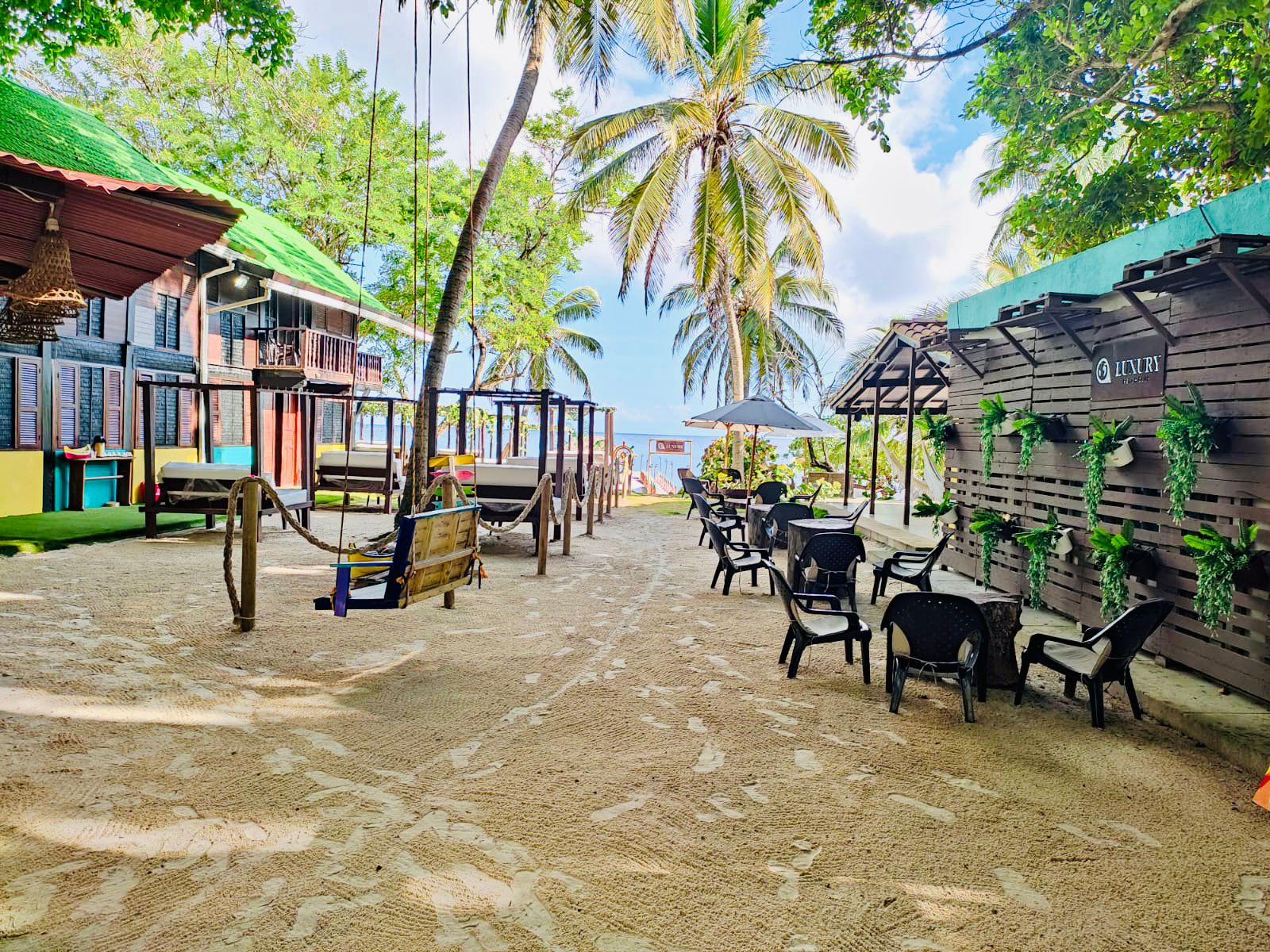 Uso de caretas, parasol, playeras, sillas, salas, hamacas